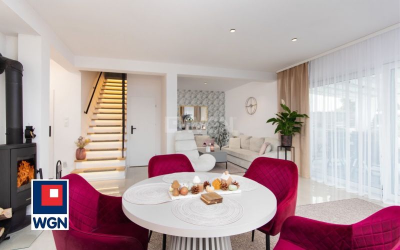Standard i wyposażenie:?Budynek w technologii tradycyjnej z dachem pokrytym dachówką.?Duże okna trzyszybowe z elektrycznymi roletami antywłamaniowymi.?Drzwi zewnętrzne antywłamaniowe.?Pompa ciepła z ogrzewaniem podłogowym + kominek.?Kuchnia na indywidualne zamówienie z pełnym wyposażeniem AGD.?Panele i terakota wysokiej jakości.?Dom sprzedawany z meblami w zabudowie.