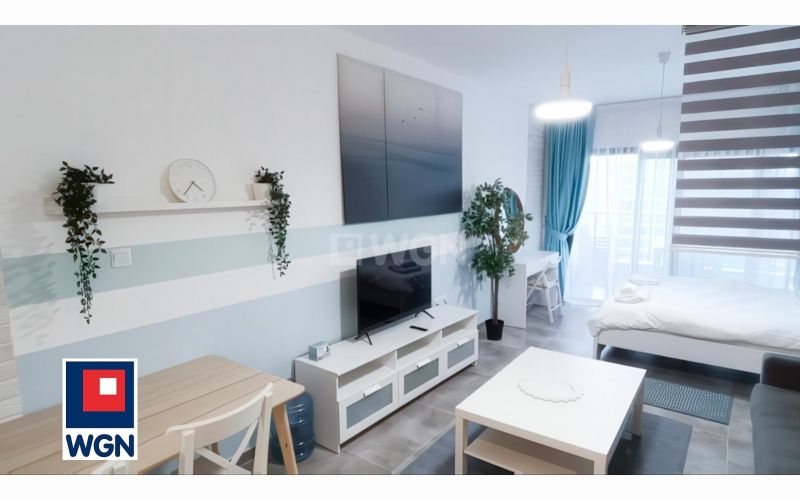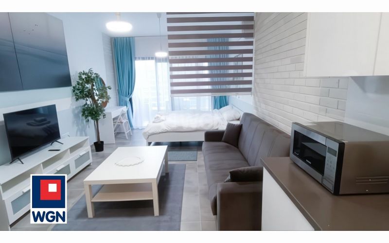 Funkcjonalny układ łączy strefę wypoczynku, pracy oraz w pełni wyposażony aneks kuchenny. Duże przeszklenia wprowadzają naturalne światło i potęgują wrażenie przestrzeni. Apartament sprzedawany jest z kompletnym pakietem projektowym - nowa renowacja, wysokiej jakości materiały, nowoczesna kolorystyka oraz starannie dobrane detale pozwalają wprowadzić się od razu po zakupie, bez dodatkowych kosztów.