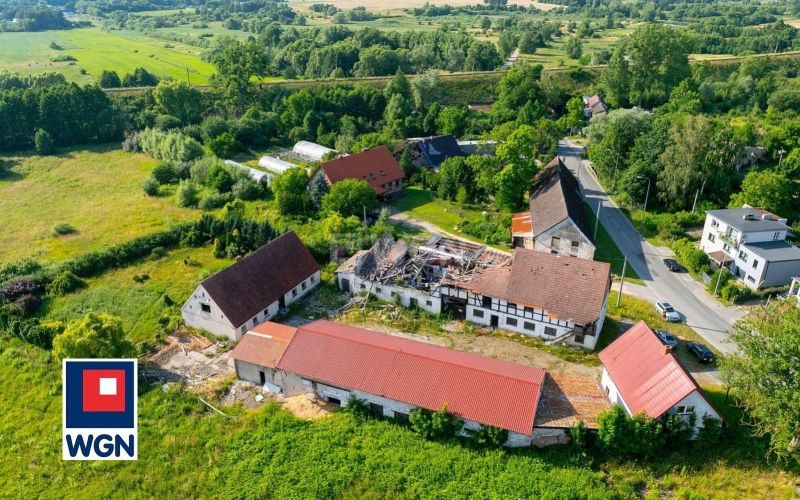 - Działka zabudowana 5 budynkami wolnostojącymi do rozbiórki: