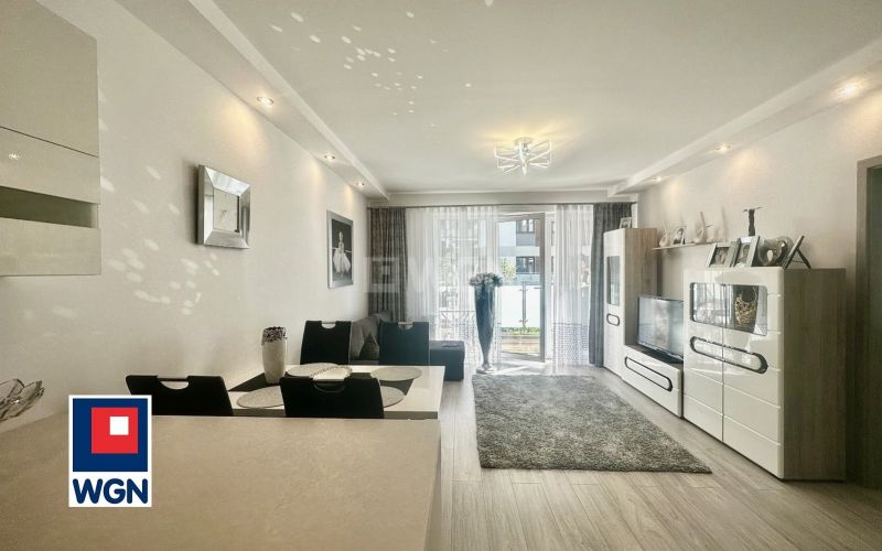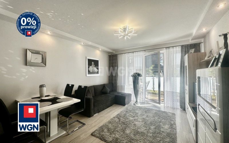 Na sprzedaż w pełni umeblowane dwupokojowe mieszkanie z tarasem o powierzchni 47,27 m2.